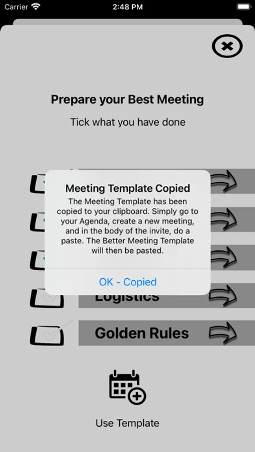 - Copy a meeting invite template to your favorite Calendar invite application.