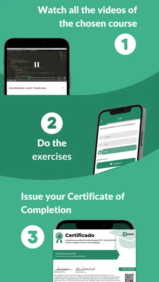 As you learn, your progress in the online course is automatically saved, whether in the video lessons of video courses or in text courses, in addition, in the course itself you can find exercises to train your knowledge, a forum for questions and additional resources such as handouts or some attachment related to the course.