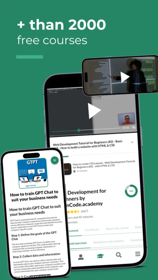 Learn with + than 2000 free online video courses with a certificate of completion, as well as exercises, discussion forums, articles, text courses and much more for your learning quickly and practically.
