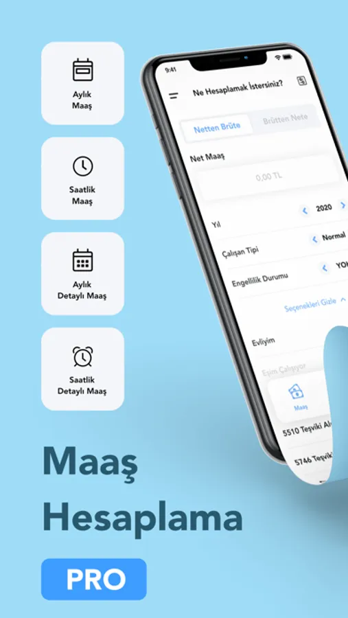Maaş Hesaplama uygulaması ile yapabileceğiniz tüm işlemler;