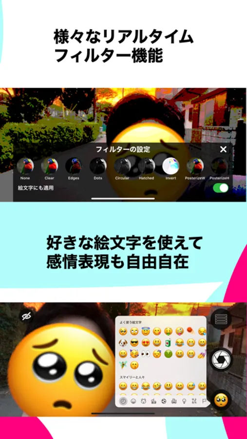 【フィルター】豊富な種類のリアルタイムフィルター機能でより楽しく