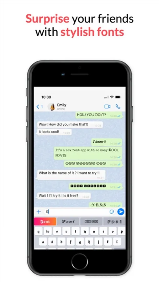 Fonts provides the most popular fonts which you can simply select in the keyboard: cursive, gothic, bold, italic, upside down, bubble, and so much more! You can use it in all social media apps and texting apps to make great content and be unique when chatting with friends.