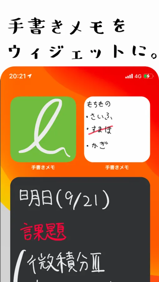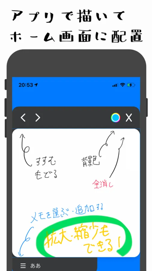 いくつでも手書きメモのウィジェットをホーム画面に配置することができます。