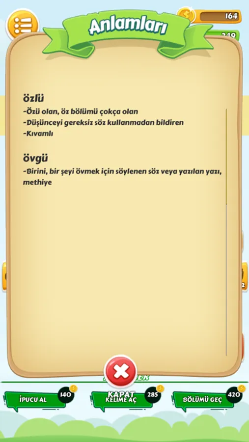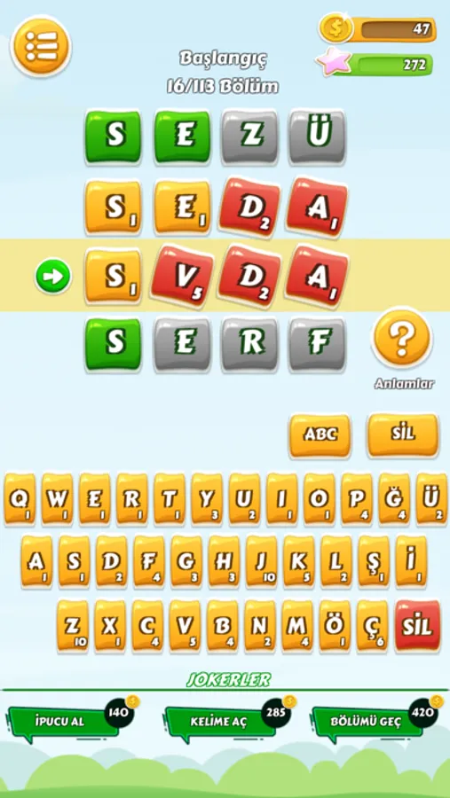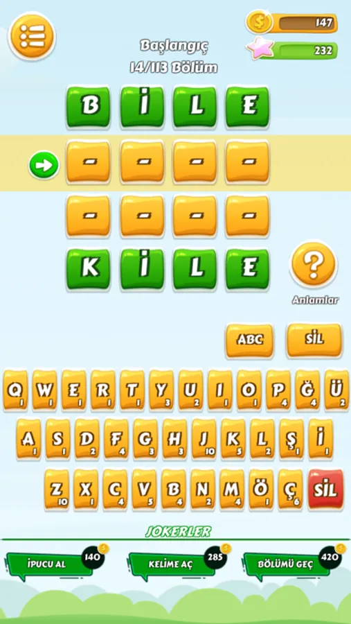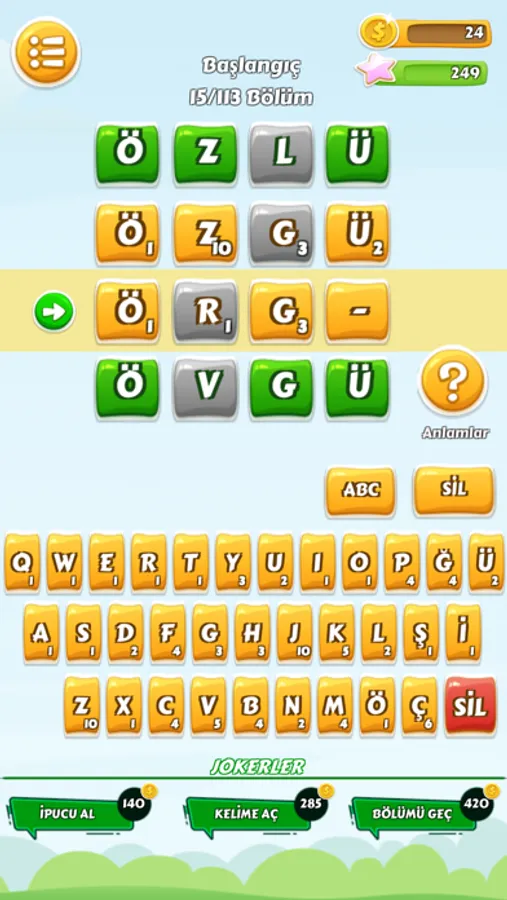 hazırladığımız jokerleri kullanabilirsiniz. Kelimenin tamamını açabilir, bölümü geçebilir ya da