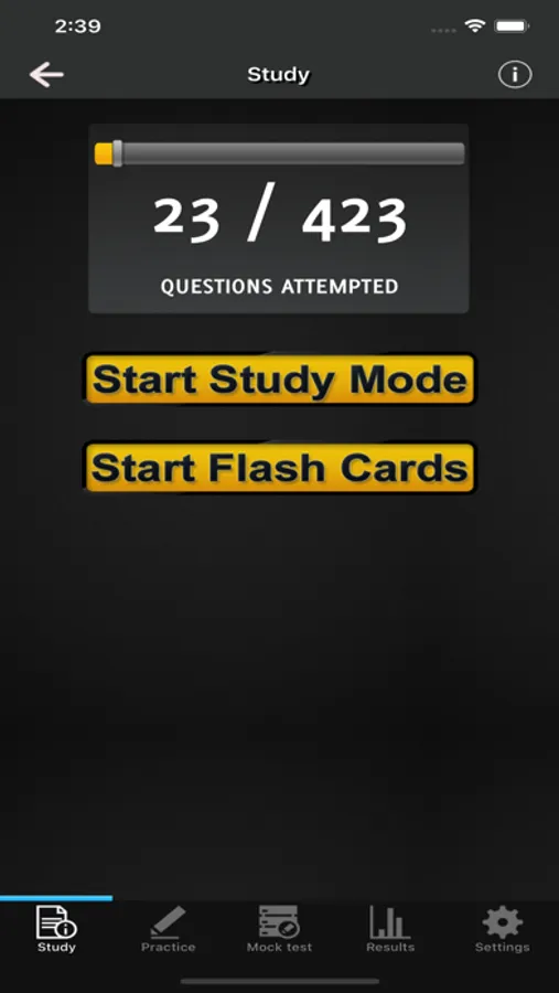 - Four Study Modes: Study, Practice, Flashcard and Stress Test