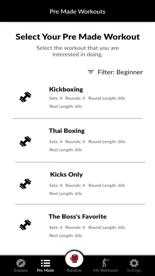 You can choose from our 3 workout options - pre-made, create your own, and the randomizer.
