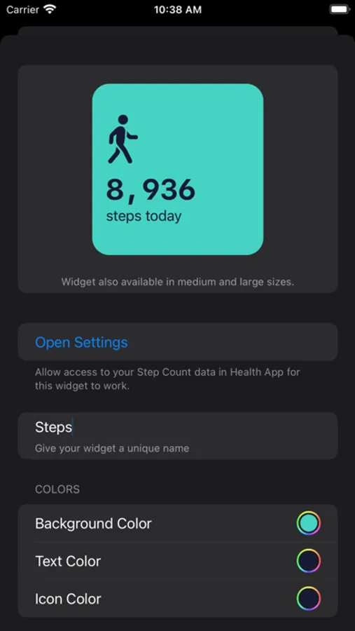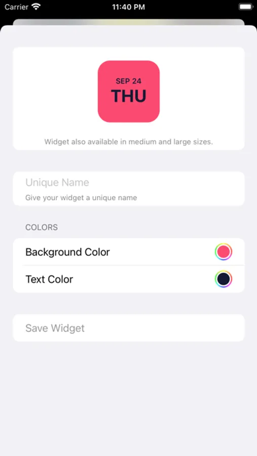 - Configure the widget with custom and unique settings, including font colors, background color, and icon