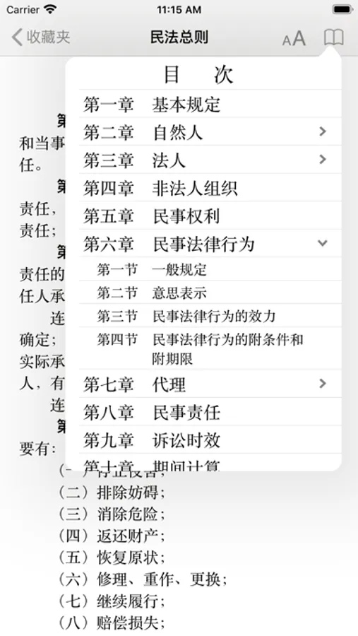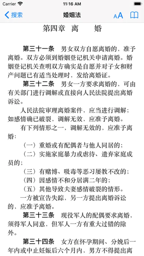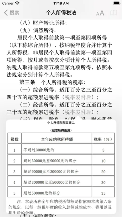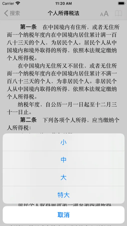 5. 法律全文查看,目录索引,字号大小4级调节;
