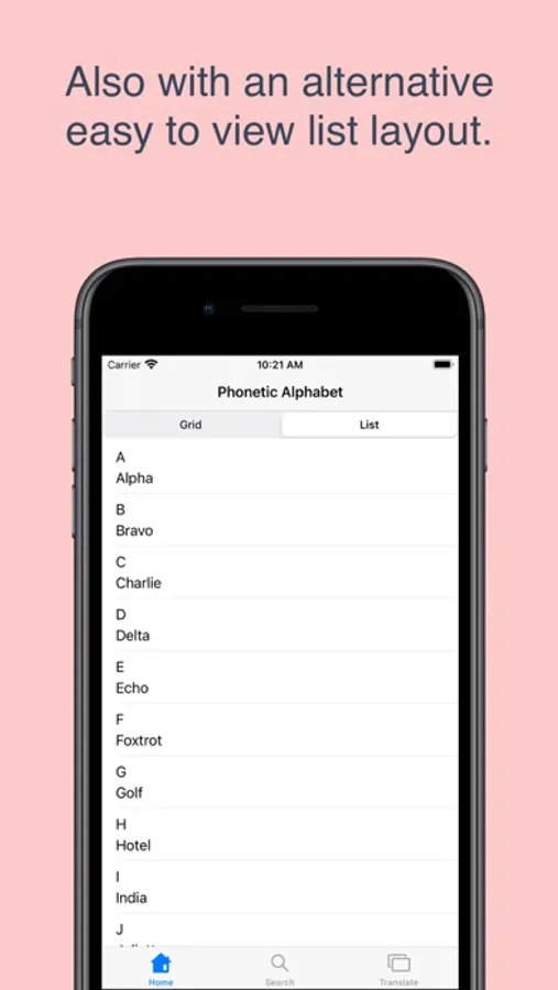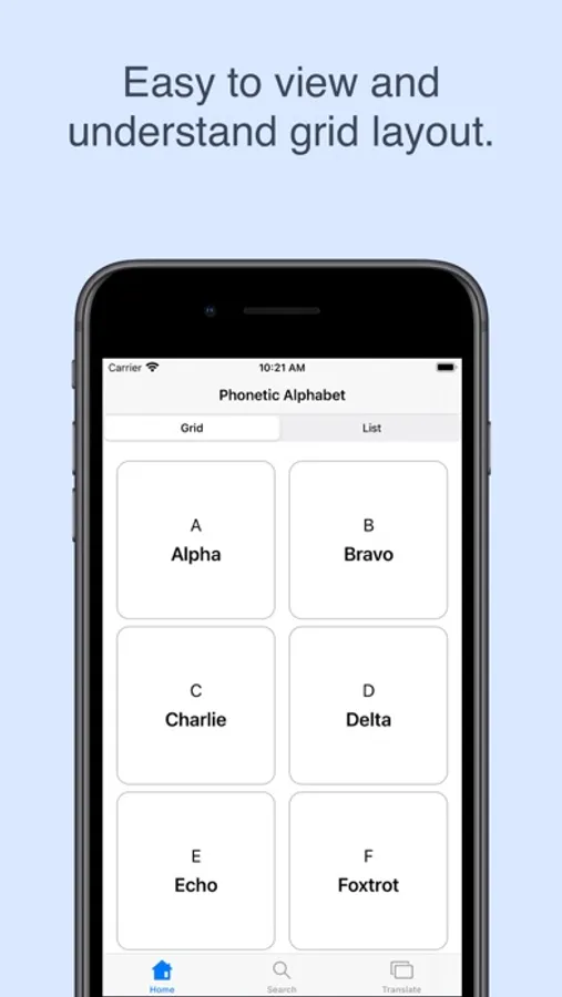 Easily find and search the NATO phonetic alphabet in various layouts to suit you whether that is in a grid or list view as well as being able to search for a specific word.