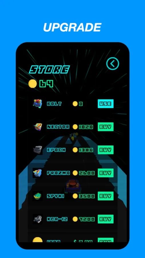 Explore the beautifully designed arcade experience in this action packed 3D game. Glide and fly through adversaries using your lightning powered cyberpunk car!