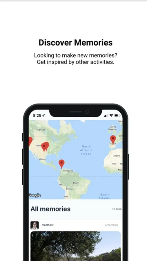 1. Create a memory: Similar to other social media apps, you can create a post. In this case, you are creating a memory. A memory has a few attributes. For example, name, location, brief description, etc.