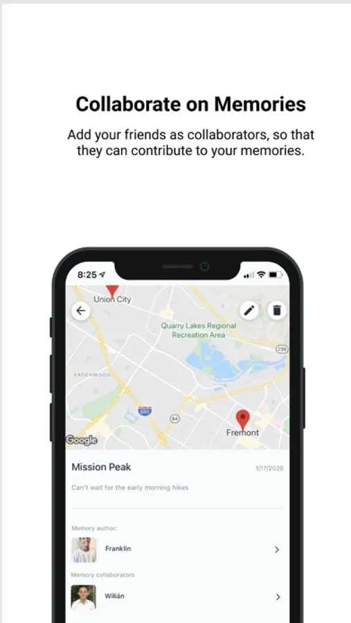 4. Memory collaboration: Memories are better with friends. You may add a friend to collaborate on your memories. When you add a friend, they will have edit access to add activities inside of your memory.