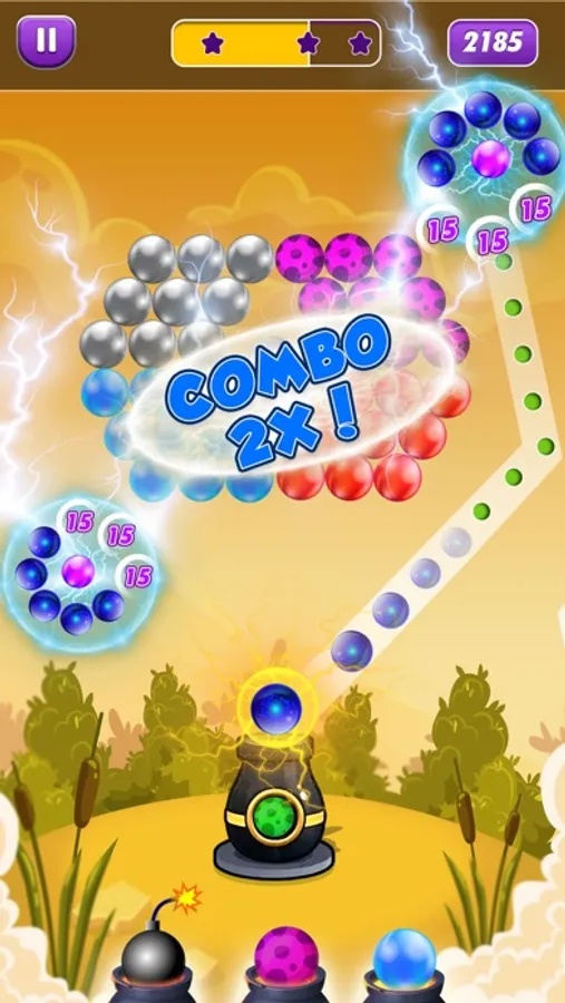* Shoot bubbles with power-up bubbles: color, fire, lightning, magic bubbles. This is why it is called Double bubble shooter too.