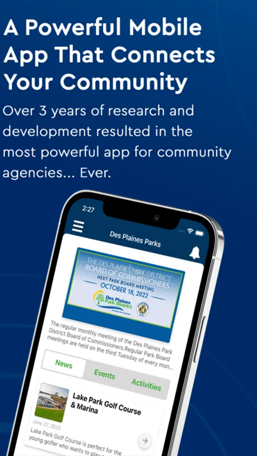 The official app of the Des Plaines Park District provides community members the ability to view and realize the abundance of program offerings and amenities available in their hometown. Park and facility information, news, announcements, events and much more are provided. Push notifications with special announcements or alerts give the user unique access to information. Download the new DPPD app and connect to your community!