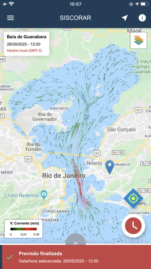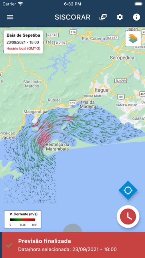 Este aplicativo é capaz de prever a intensidade e a direção da corrente gerada pela maré astronômica em águas rasas para a área geográficas compreendida pela Baía de Guanabara e arredores, no Rio de Janeiro; para a Baía de Sepetiba e arredores, também no Rio de Janeiro; para o Porto de Santos e arredores, em São Paulo e para o Porto de Paranaguá e arredores, no Paraná.