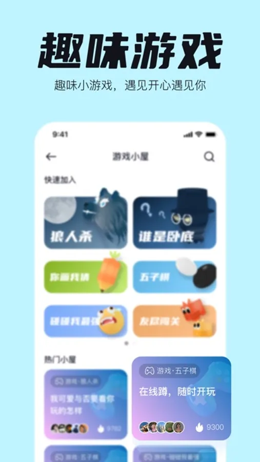 趣味游戏:五子棋,猜歌名趣味游戏与好友玩耍;