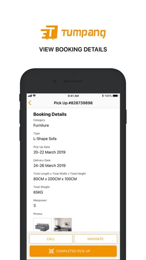 • Pick up and drop off notifications, photo uploads & QR code generator for delivery/transportation process