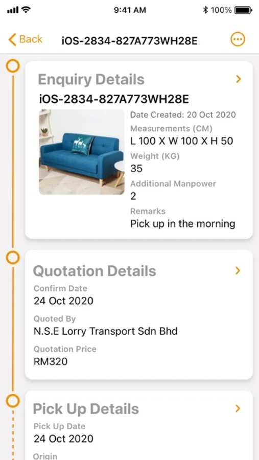 1) Enter your transportation/delivery request enquiries and snap the photo of items you wish to deliver (guide provided).
