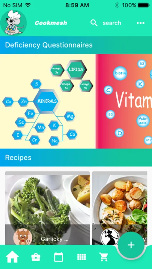 A COMPLETE healthy eating organizer where you can store and share your recipes, import recipes from the web, create meal plans, check your body nutrient deficiencies, track your daily food intake and progress, and manage your family pantry and shopping list.