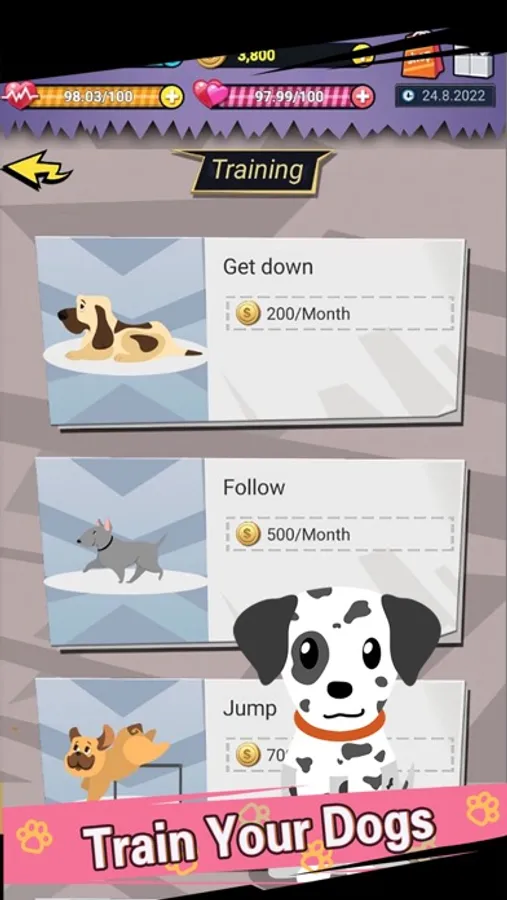 Starting from training your first dog, continue to collect all kinds of dogs, groom them and teach them all kinds of skills, and keep learning professional skills, and finally becomeA top dog trainer who owns all kinds of dogs.