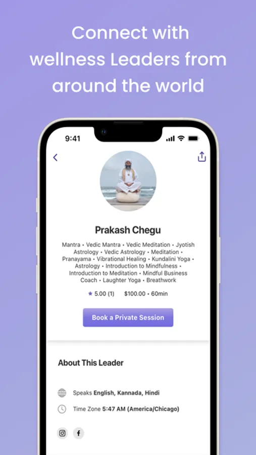 Connect with wellness leaders for private and group sessions in a variety of evolutionary modalities such as coaching, breathwork, meditation, yoga, sound, energy healing, astrology, and hypnotherapy.