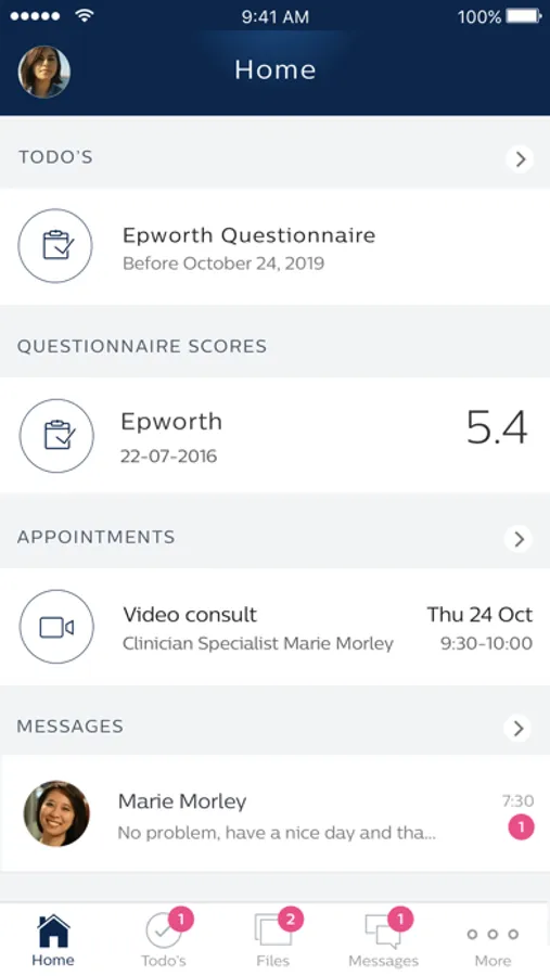 Achieving a great night’s sleep with PAP therapy happens when you take an active role in your own therapy. The Philips sleep support service app allows you greater control of your treatment journey from diagnosis through to therapy, all in one place. The Philips Sleep Support Service app makes it easier to connect with your hospital and clinician, conveniently monitor your outstanding tasks and receive reminders when you have a task to complete so there is no delay to your treatment.