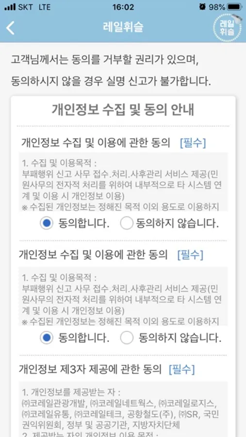 스마트폰을 통해 한국철도공사의 부패행위, 행동강령 위반, 청탁금지법 위반, 방만경영, 하도급 불법운영을 신고하는 곳입니다.