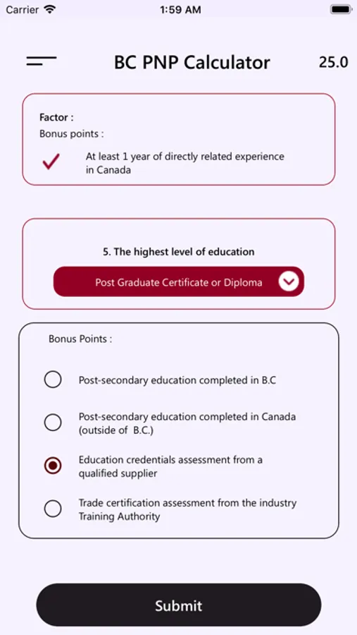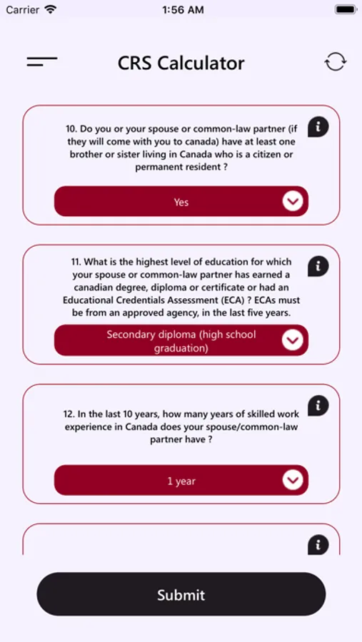 App includes many of the requirements to qualify for many of the different programs for Immigration to Canada. "Powered by Magicmind Technologies Limited" this App Includes the points system that are linked to each part of the qualification process for Language, Education, Marital Status, Age, Work Experience history and well as Spouse/Partners Age, Education, Language skills and Work experience which is needed to generate points for qualifying programs. App also includes news update from Immigration Canada along with Federal and Provincial Immigration Program weekly and monthly Draws under the difference Programs available. These include Express Entry, Provincial PNP Draws, RNIP draws, AIPP draws. This App has also included Video’s of program descriptions and qualifications required to enter each program.