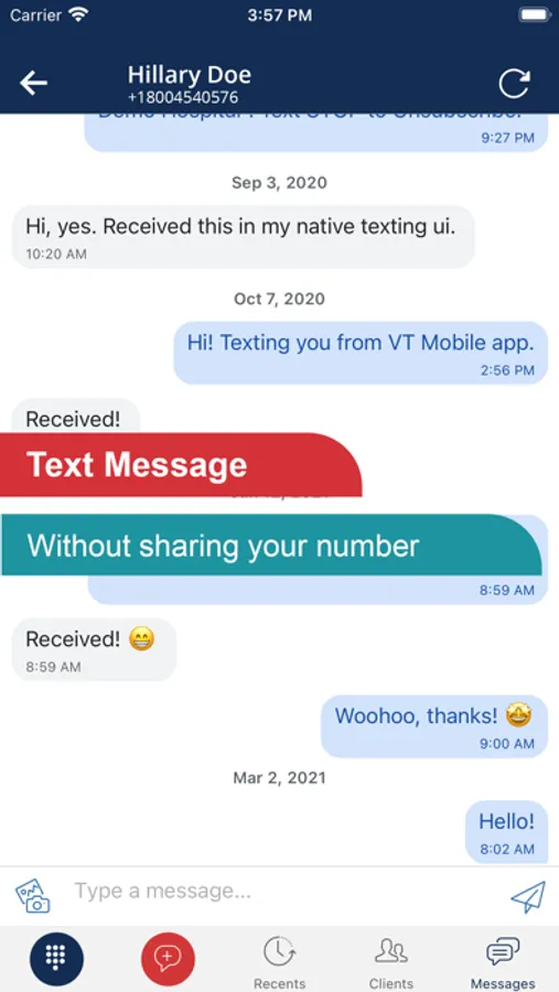 - Text Message: Send and receive texts on a mobile device without sharing your number