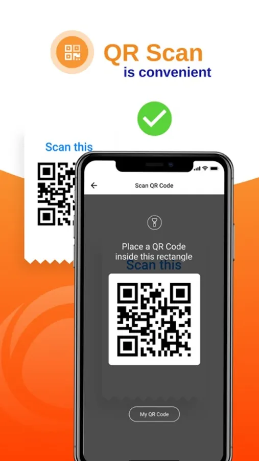 - Make Payments through QR code in paying the merchants.