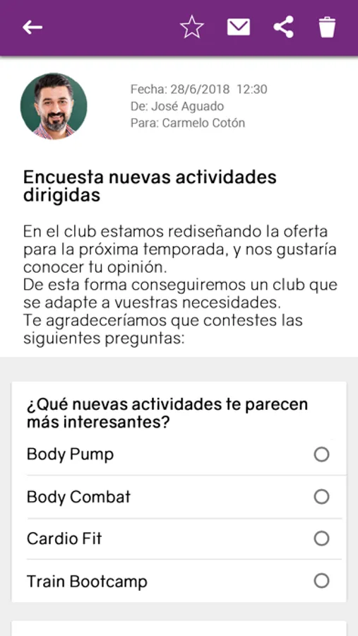 Rep una notificació quan el centre esportiu t’enviï un missatge.