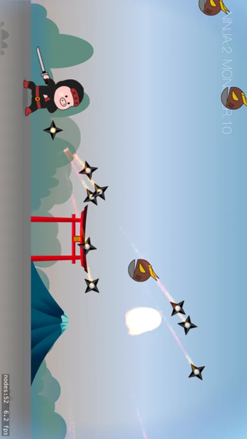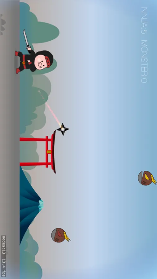 Monsters will appear from right side and Pig will kill monsters with ninja stars.