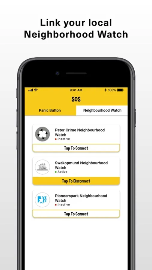 Link your Neighborhood Watch & 3 Rescue friends to receive panic & sos trigger alerts.