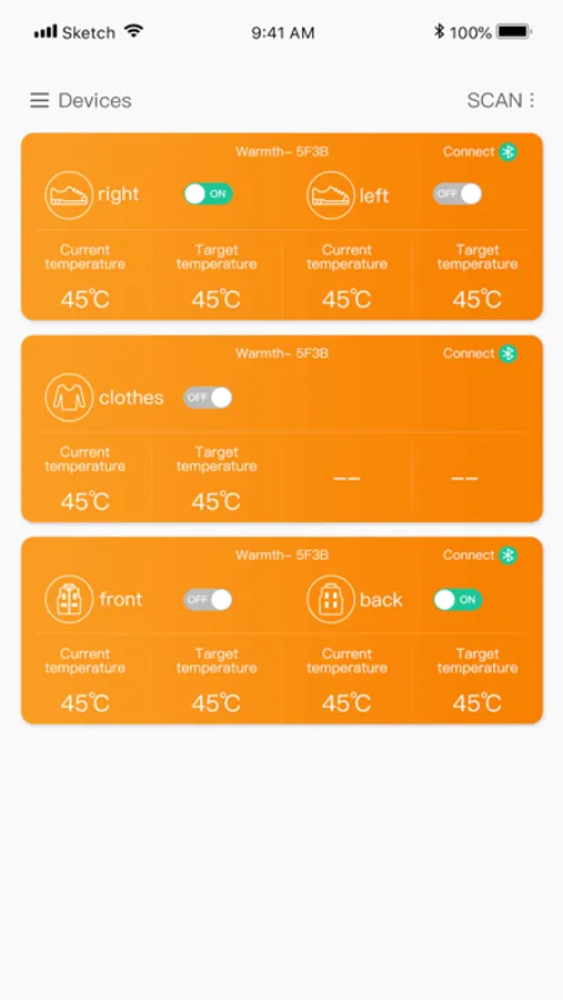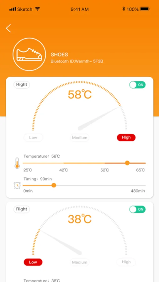 App adopts low-power ble Bluetooth communication technology. Connect the product Bluetooth ble through the mobile phone, remotely control the intelligent warm intelligent product, and realize the mobile phone control, temperature regulation, regular shutdown, massage and heating product regulation. It solves the problems that the traditional temperature control switch has no display and too many keys, and the operation is complex.