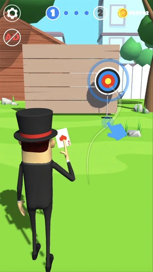 Draw a path, throw cards, avoid obstacles, smash balloons, cut fruits, and finally hit the bullseye.