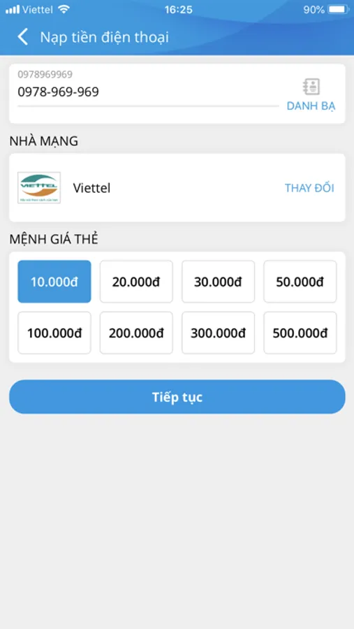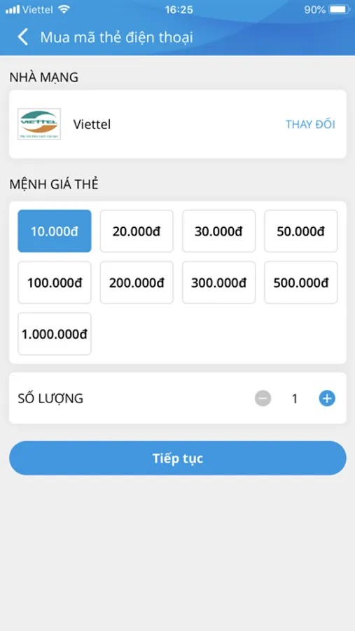 - Mua mã thẻ điện thoại của tất cả các nhà mạng: Viettel, Mobifone, Vinaphone, Vietnamobile, Gtel Mobile