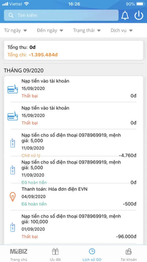- Hưởng đầy đủ các chương trình khuyến mãi từ nhà mạng và từ MobizPay.