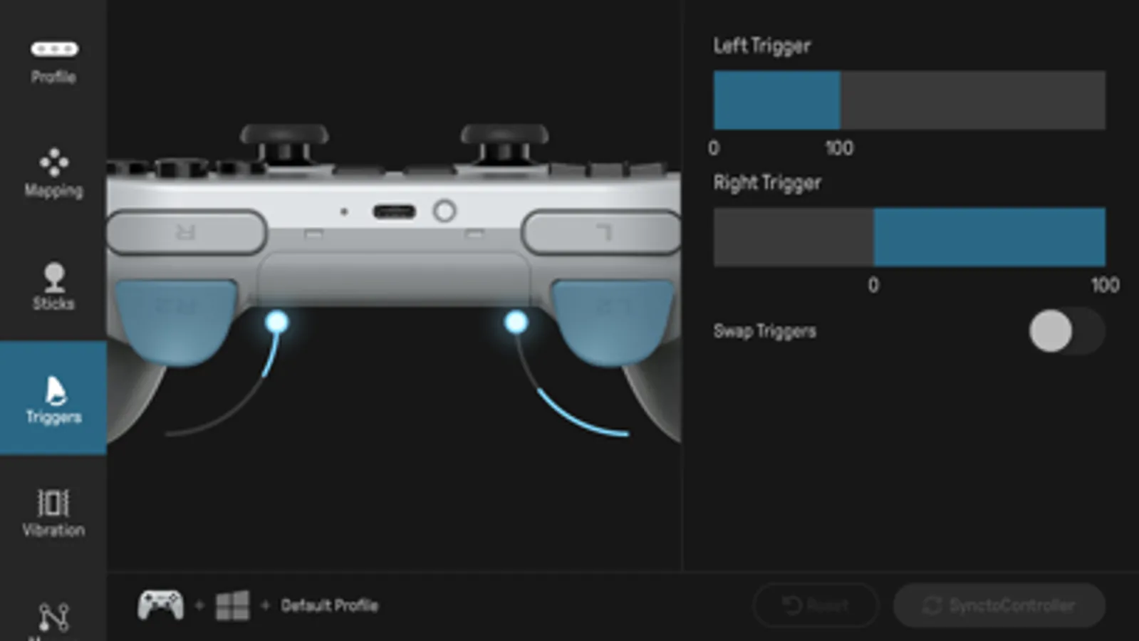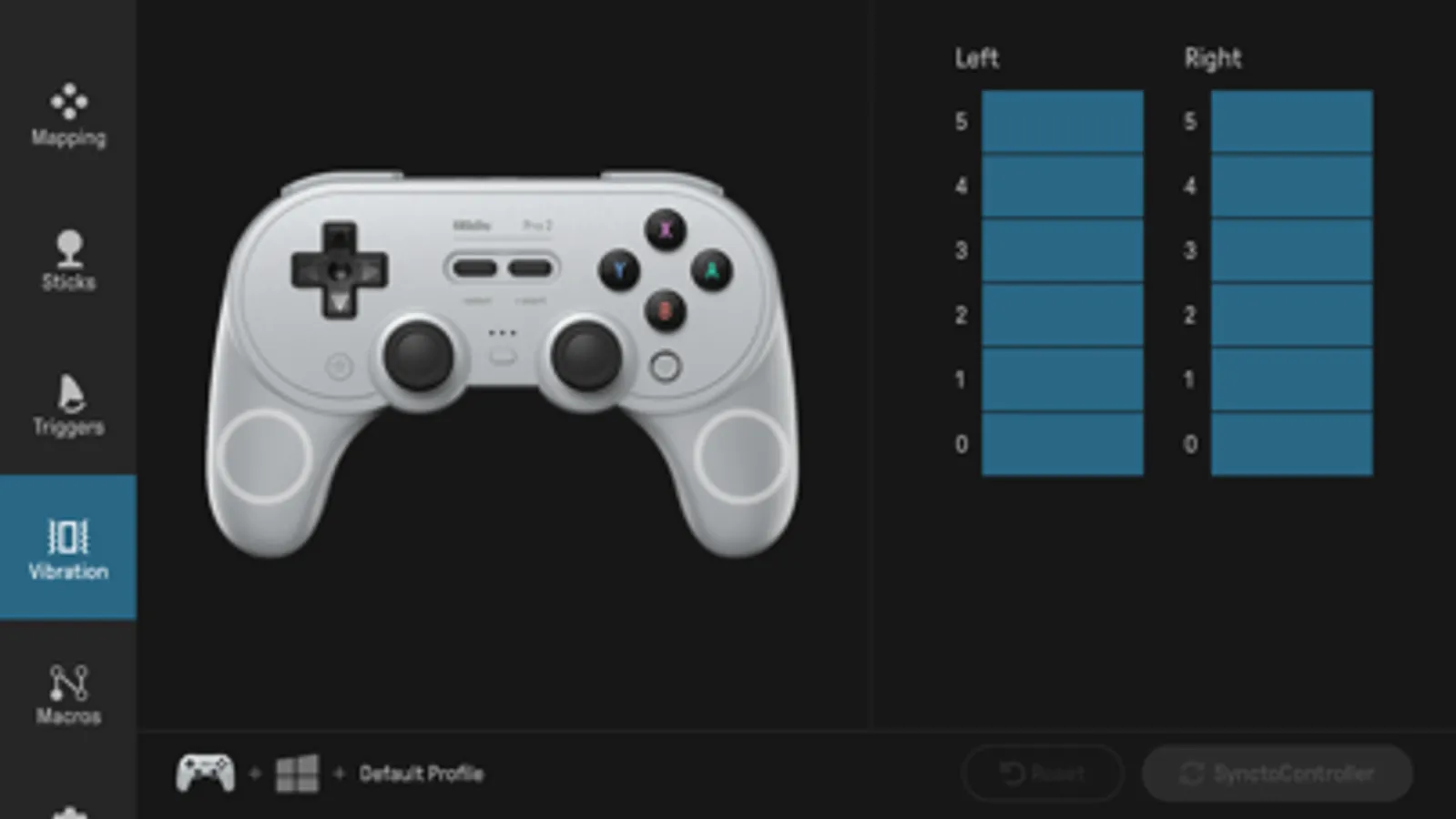 8BitDo Ultimate Software gives you elite control over every piece of your controller: customize button mapping, adjust stick & trigger sensitivity, vibration power control and create macros.