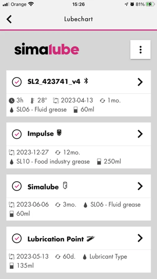 • The simalube IMPULSE connect equipped with Bluetooth® can be configured and monitored directly via the app