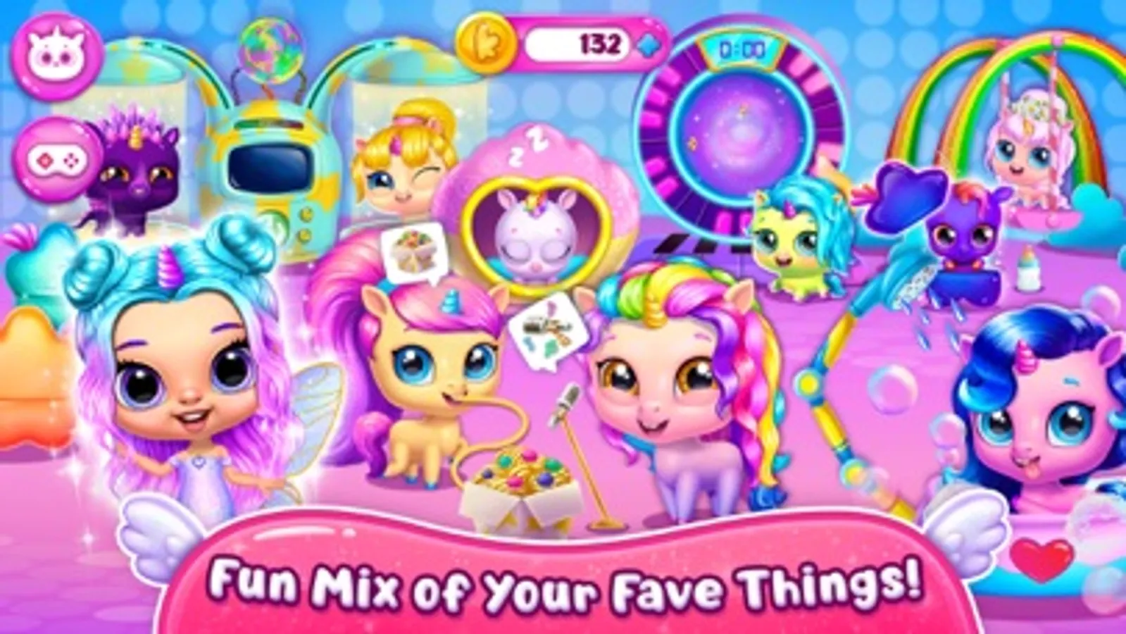 When a baby unicorn hatches, it wants to eat! Feed a bottle to help your cute baby pet grow up, bathe, feed, play with, and put to bed when tired! Collect all eggs and hatch adorable virtual pet idols!