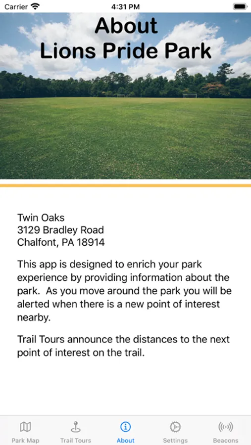 Navigate the trails of Lions Pride Park in Warrington, PA, and get information about various Points of Interest on the trails and around the park.