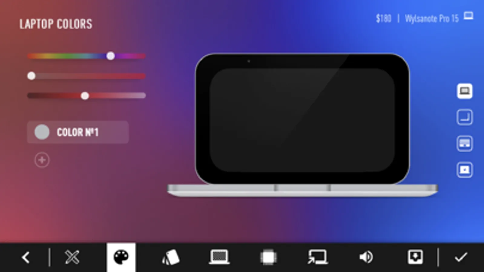 Where to begin? If you don't know what to do, take the first step. You came up with a unique name for your first laptop. A start has been made, now you need to come up with the exterior design of your dream laptop. Create whatever your heart desires - color; width; height; the thickness of the laptop; keyboard size; logo; screen size, resolution and technology; operating system, processor; video card, you can even choose the packaging in which your creation will lie!