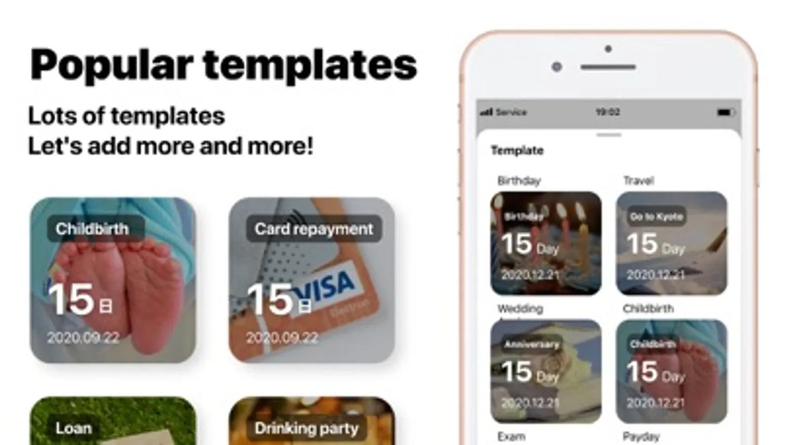 For example, you can create a birthday countdown, vacation countdown, but also count days until retirement date, wedding ceremony, baby due to date (pregnancy), or any other event in your life.