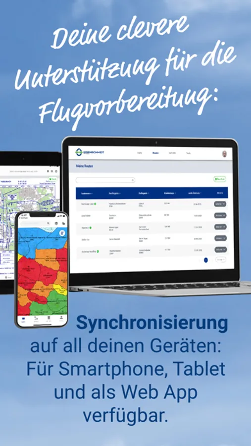 Die Anwendung ist für verschiedene Endgeräte konzipiert. Ob die Planung daheim auf einem Mac oder PC oder auf dem Flugplatz auf dem Smartphone geschieht – pilotESsentials ist auf allen Geräten verfügbar. Die Inhalte werden natürlich bei aktiver Internetverbindung laufend synchronisiert.