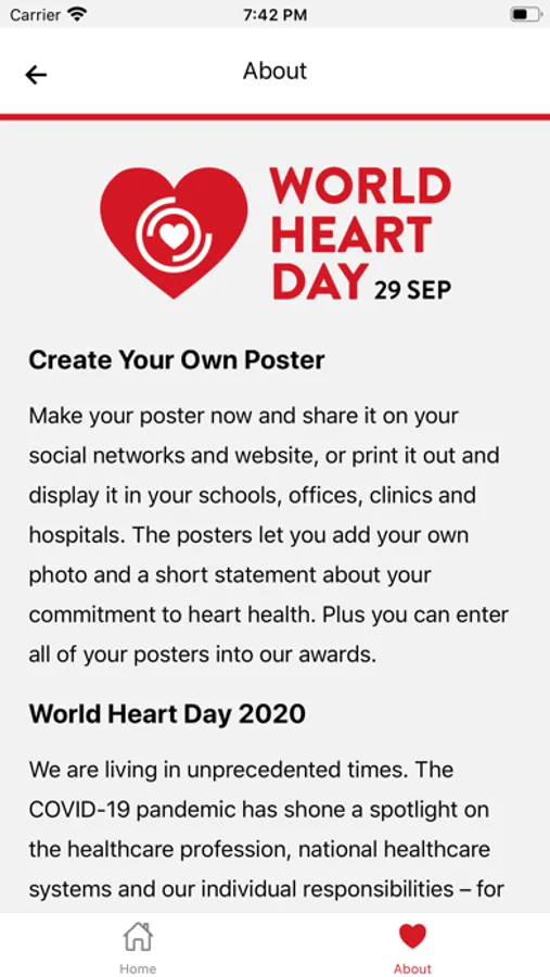 This application has been develop by PharmEvo pvt. Ltd and the objective is to help people create posts for Facebook in accordance with World Heart Day 2020 Theme. The post will contain a picture, a message which needs to be completed (Use Heart to…) and name of the person. The user will have option of develop the post in various different color themes. The user will have option of sharing the post on Facebook or on other social media platforms.