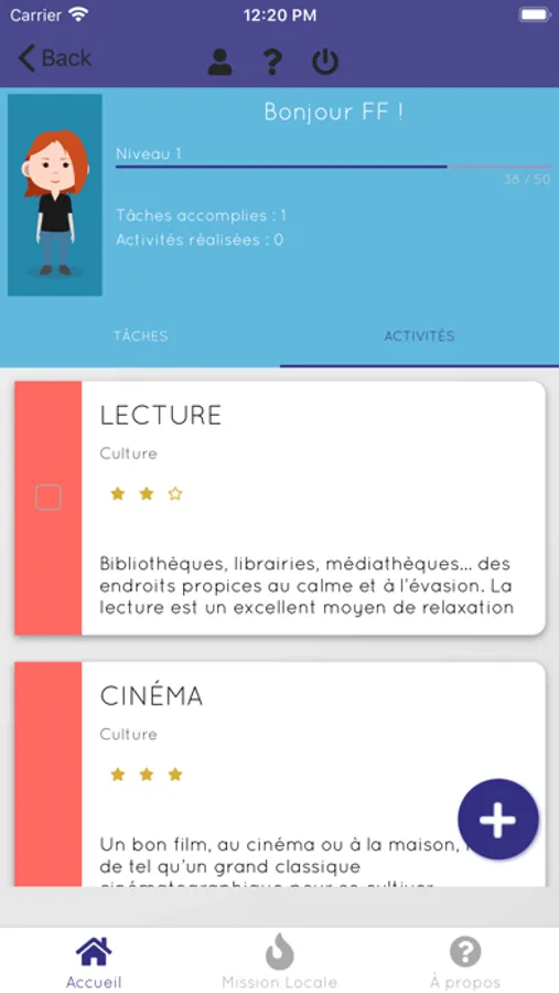 Cette application se présente sous la forme d'un gestionnaire de tâches comportant des éléments de ludification :