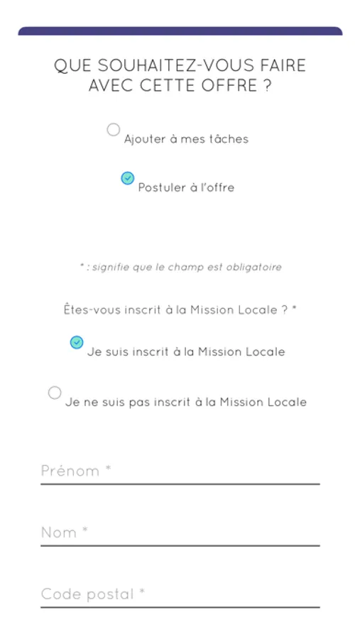 - Possibilité de postuler directement aux offres d'emploi via un e-mail envoyé à la Mission Locale