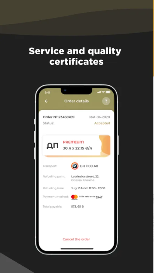 Wait for the status of the order to change When the specialist refuels the car, the status will be updated - “refueling completed”