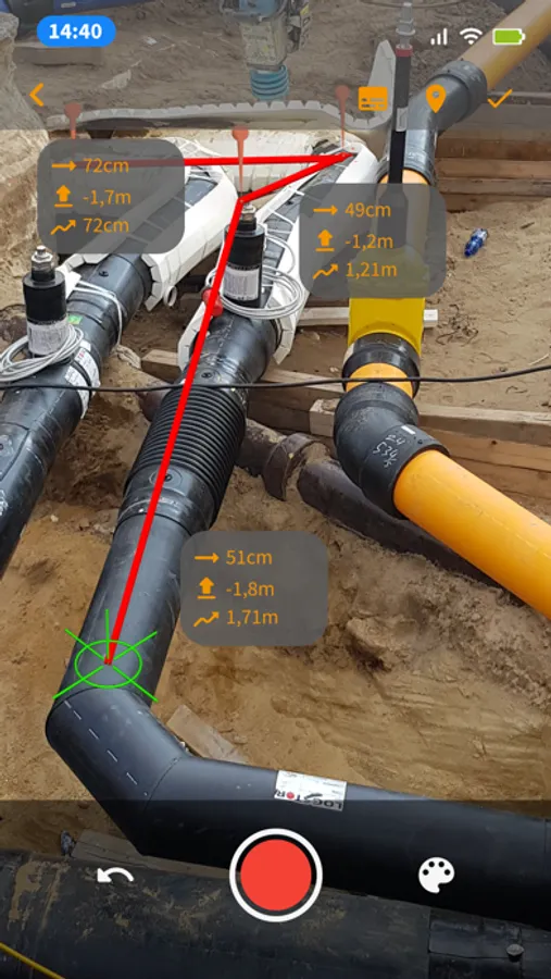 Führe deine Dokumentationsarbeiten direkt digital und ganz ohne Zettelwirtschaft durch. Leg Papier und Stift zur Seite und vermesse direkt mit dem Smartphone über Augmented Reality – super einfach und schnell. Es braucht keine Skizzen und Reinzeichnungen mehr – dein digitales Feldbuch übermittelt die Datensätze direkt an die Fortführung. Schließe die Dokumentation direkt auf der Baustelle per Knopfdruck ab und verschwende keine unnötige Zeit für Übertragungen mehr in Büros.