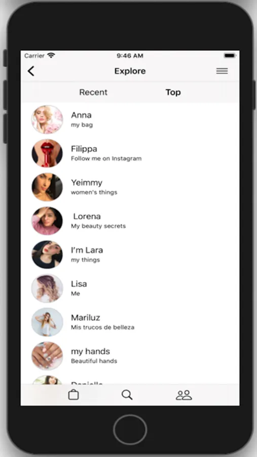 Fill your digital beauty bag with your best products. Users with many followers and likes are displayed in the "explore section"